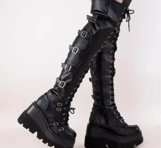 €6.42Women’s Thigh-High Boots – Platform & Buckles