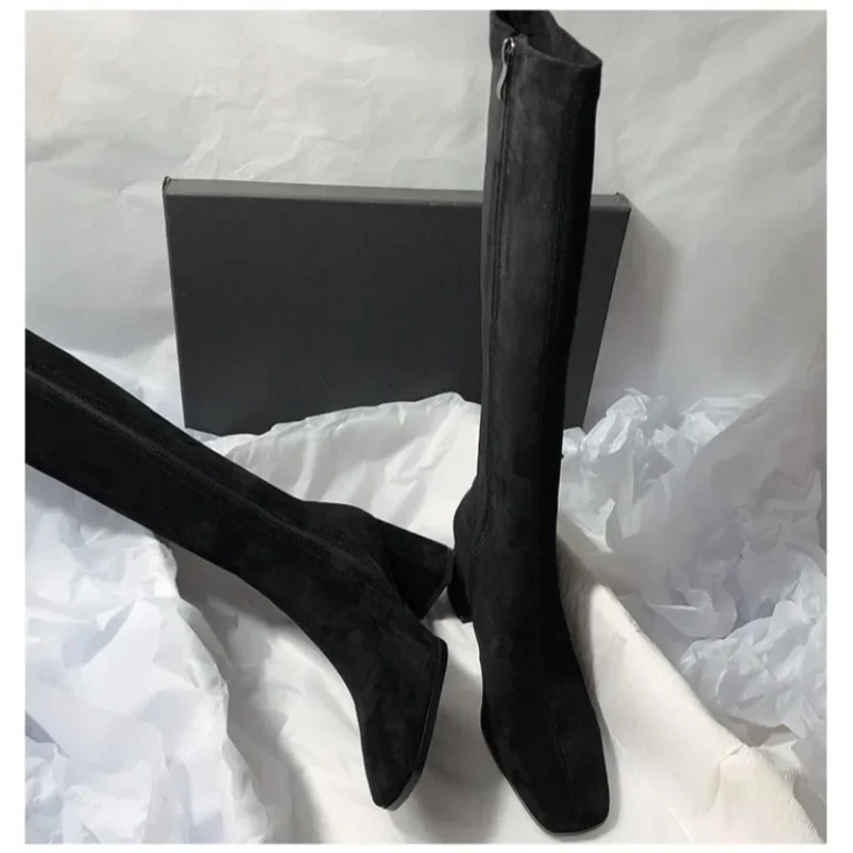 Women’s Knee-High Boots – Suede & Chunky Heel