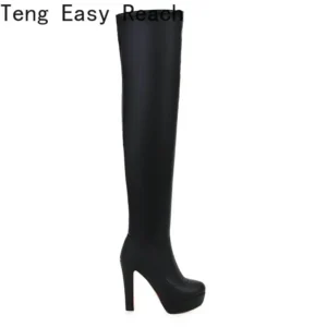 Women’s Overknee Boots – Stretch PU & High Heel