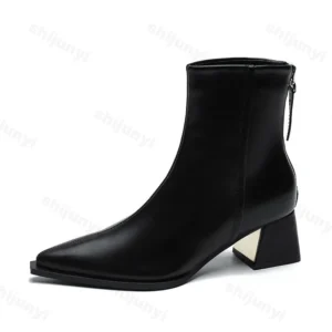 Women’s Ankle Boots – Faux Leather & Square Heel