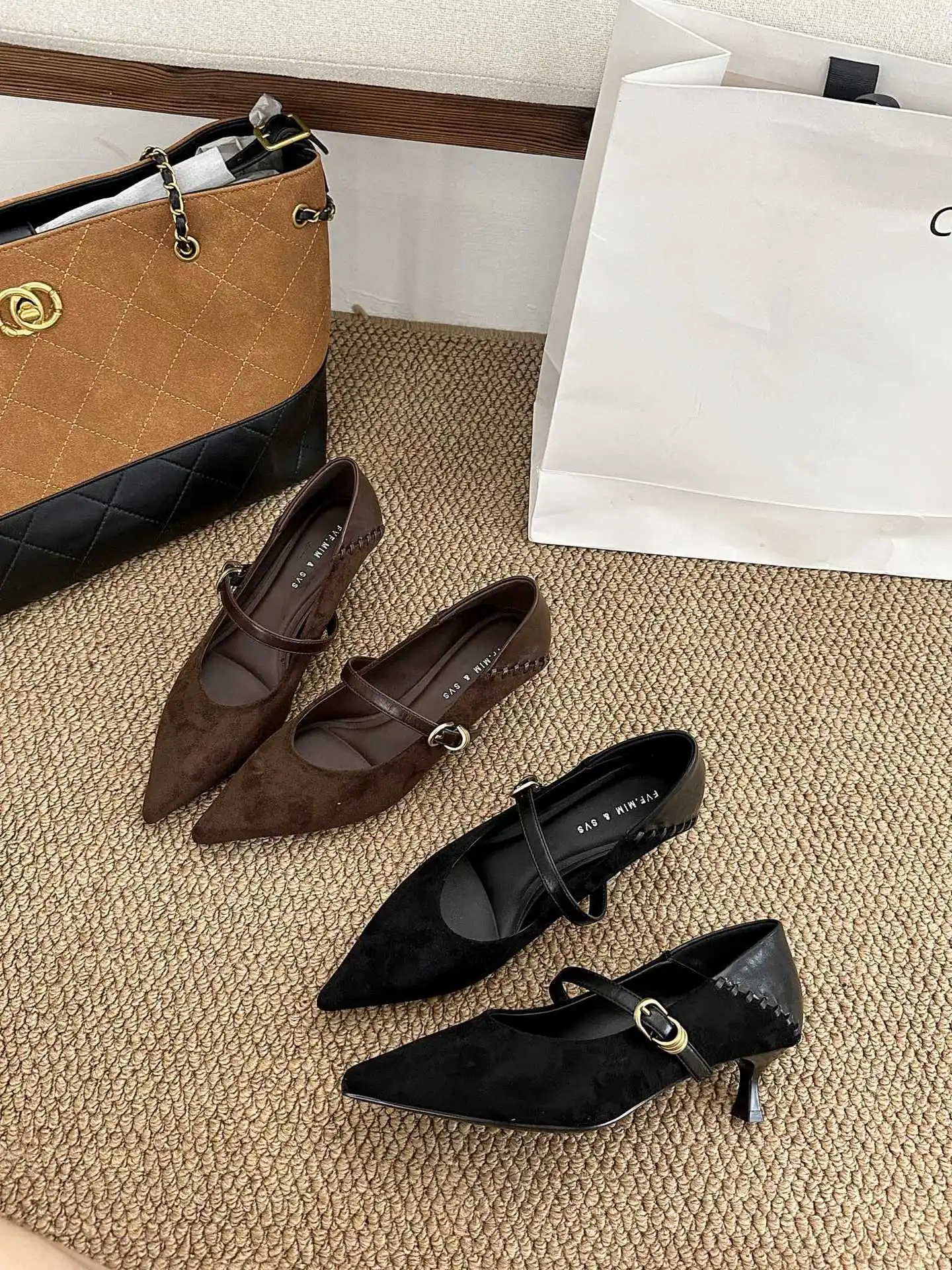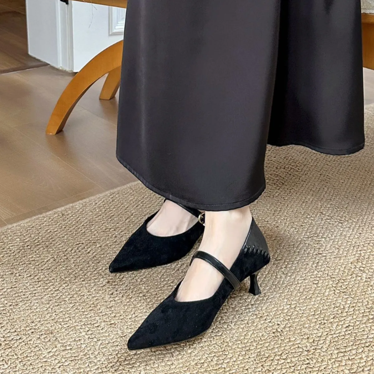 Featuring a pointed toe and thin heel, these shoes create a graceful, feminine silhouette suitable for any occasion. The pigskin insole provides premium comfort and breathability, keeping your feet relaxed all day long. Perfect for spring, summer, and autumn, these fashion-forward Mary Janes combine modern charm, comfort, and timeless style for year-round sophistication.