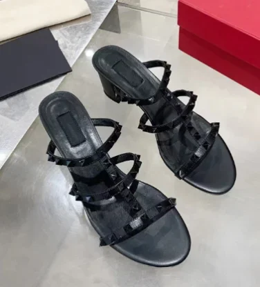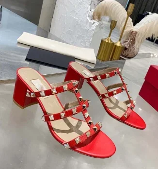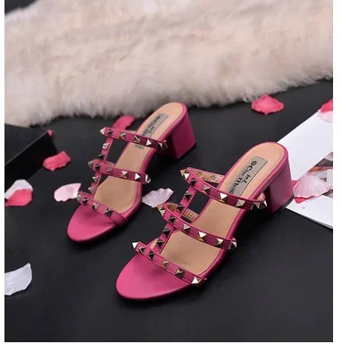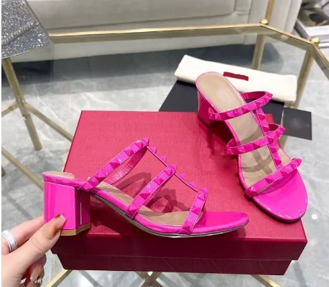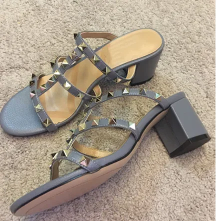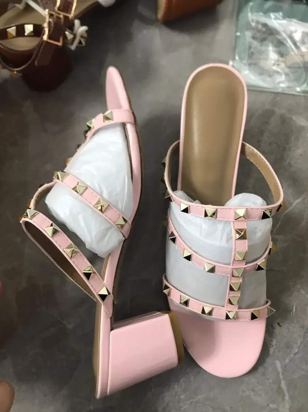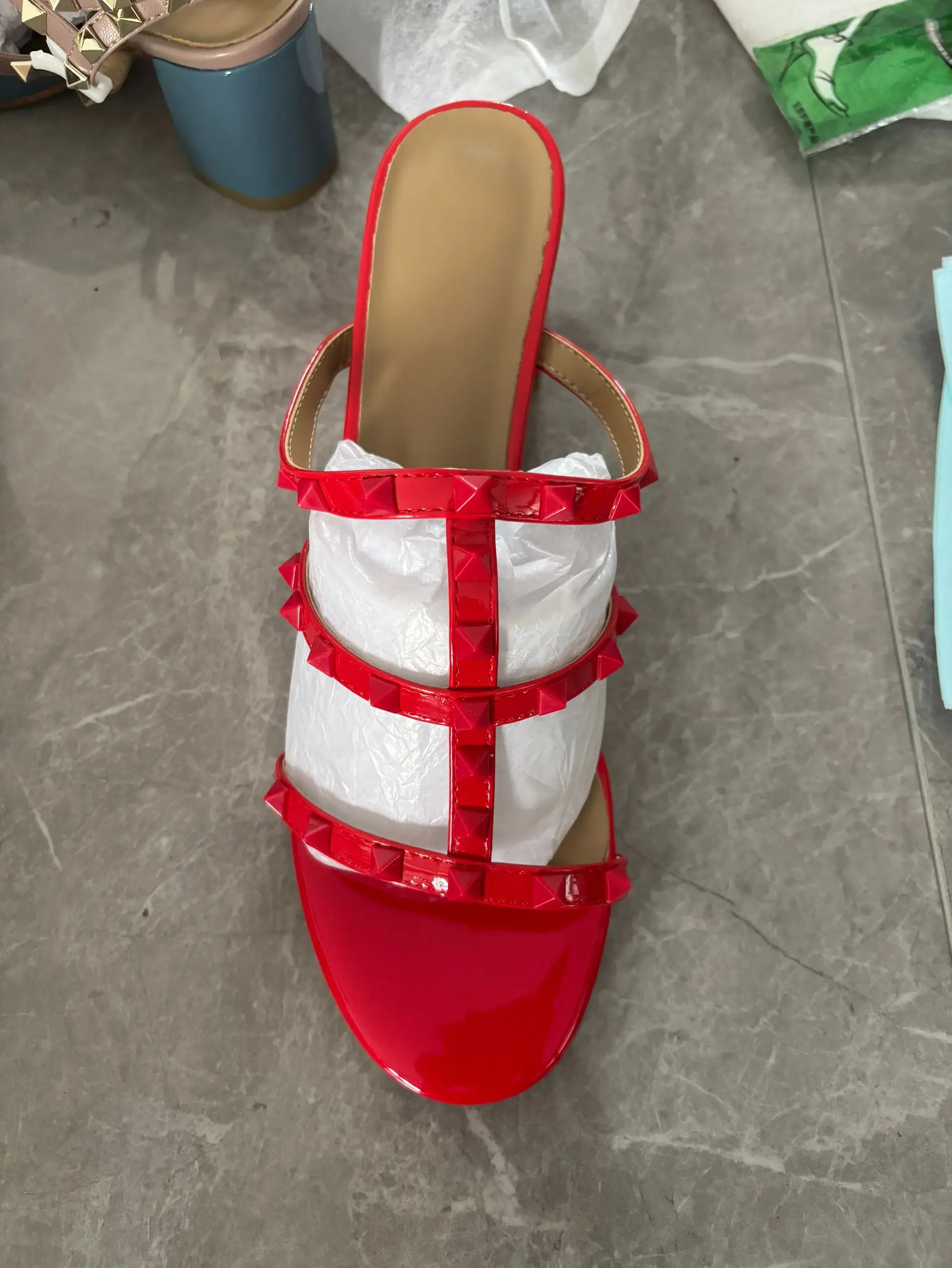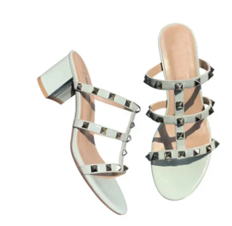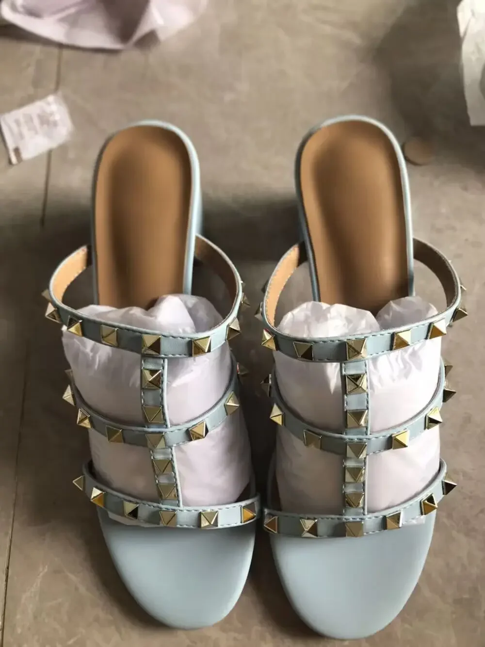 Lady Big Size 33-48 High Heels Slides With Rivets British Style Fashion Women Shoes Outdoor Gold Silver Matte Shiny No V Slipper