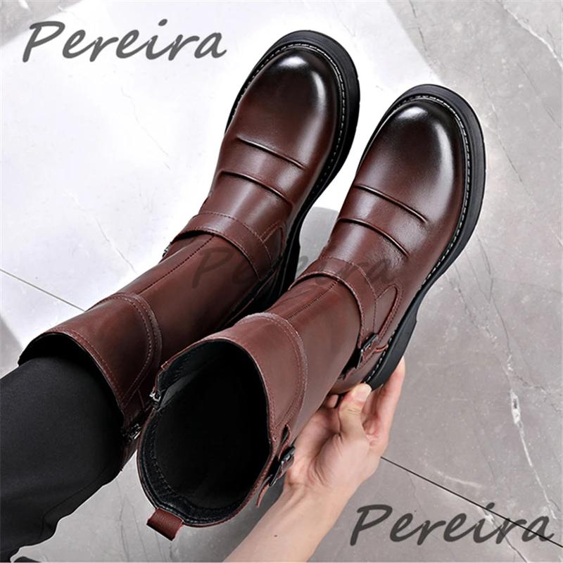 Designed with a PU and EVA insole, these boots offer lasting comfort and support, complemented by a rubber outsole for reliable traction. The open side vamp and ankle strap detailing enhance the stylish equestrian aesthetic. Ideal for spring and autumn, these fashion-forward leather boots combine craftsmanship, confidence, and avant-garde design for men who dare to stand out.