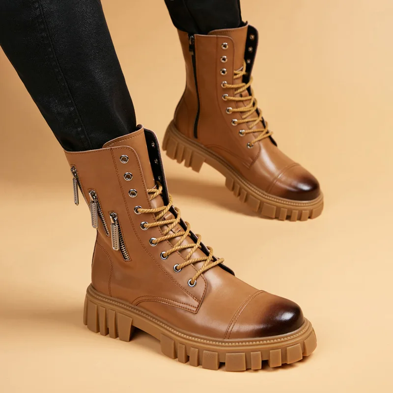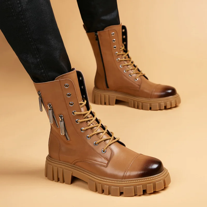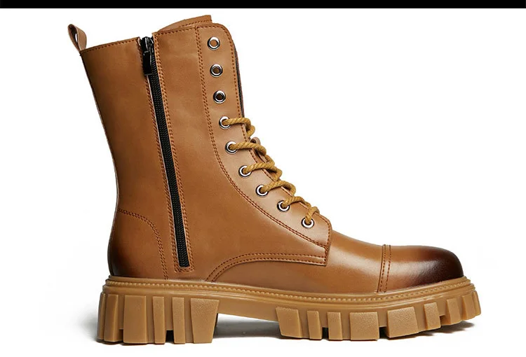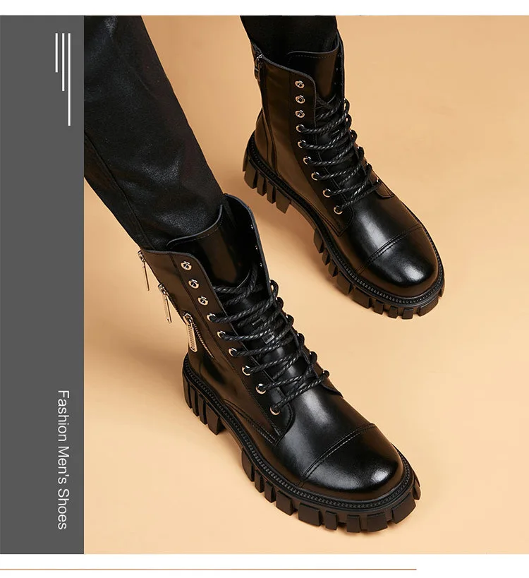 The PU lining and rubber insole provide comfort and breathability, making them ideal for spring and autumn wear. A side zipper closure allows for easy on and off, while the rubber outsole delivers solid grip and stability. Perfect for casual rides or urban fashion, these leather motorcycle boots combine craftsmanship, comfort, and bold design for the modern man.