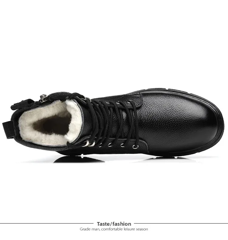 Step into comfort and rugged style with these men’s western-inspired winter boots, designed for warmth, durability, and everyday wear. Crafted from premium top-layer cowhide and lined with pure wool, they offer superior insulation and long-lasting quality. The lace-up and zipper closure ensures a secure fit while adding a modern edge to their classic high-top silhouette.
