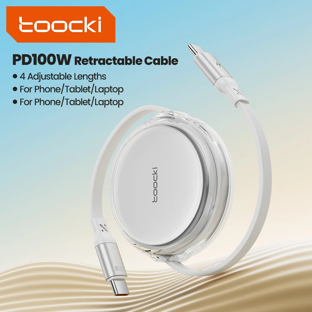 Toocki Retractable 100W USB C Cable For Tablet Laptop Fast Charger Cable For iPhone 15 Pro Max Type C For Samsung S23 Xiaomi