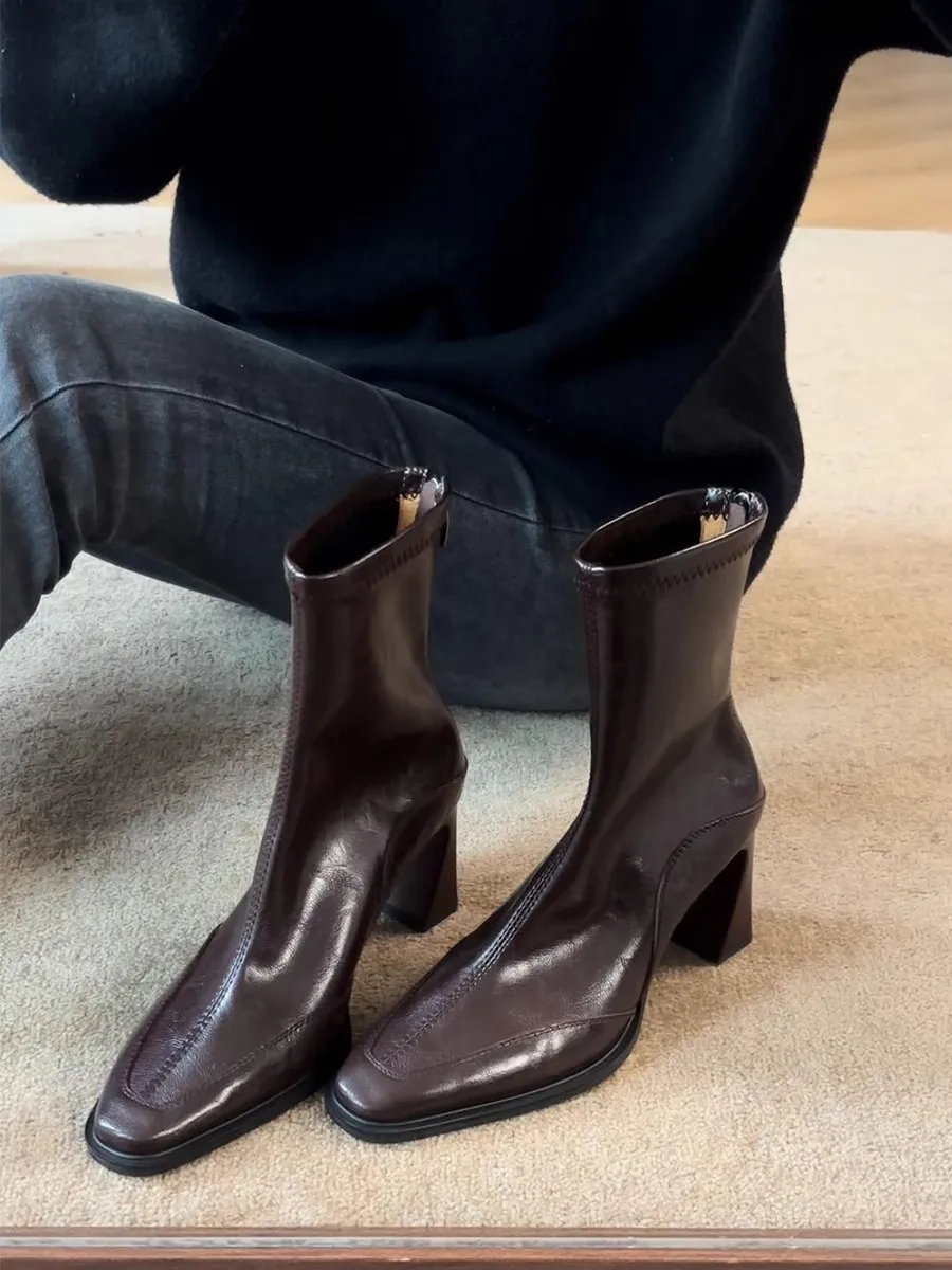 Stay warm and refined this season with these women’s mid-calf leather boots, crafted for both comfort and sophistication. Made from premium cowhide leather, they offer lasting durability and a soft, luxurious feel. The square toe and chunky heel create a modern, elegant silhouette suitable for any winter outfit.