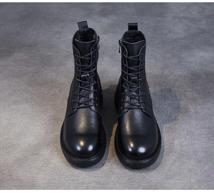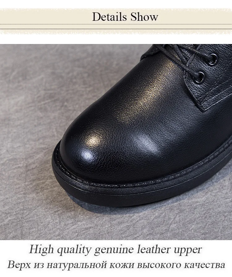 Made from premium genuine leather, both the upper and shaft ensure durability and a refined finish that pairs effortlessly with any outfit. The rubber outsole delivers excellent grip and stability on slippery surfaces. Perfect for everyday leisure or casual outings, these plush-lined leather boots combine comfort, craftsmanship, and timeless winter style.