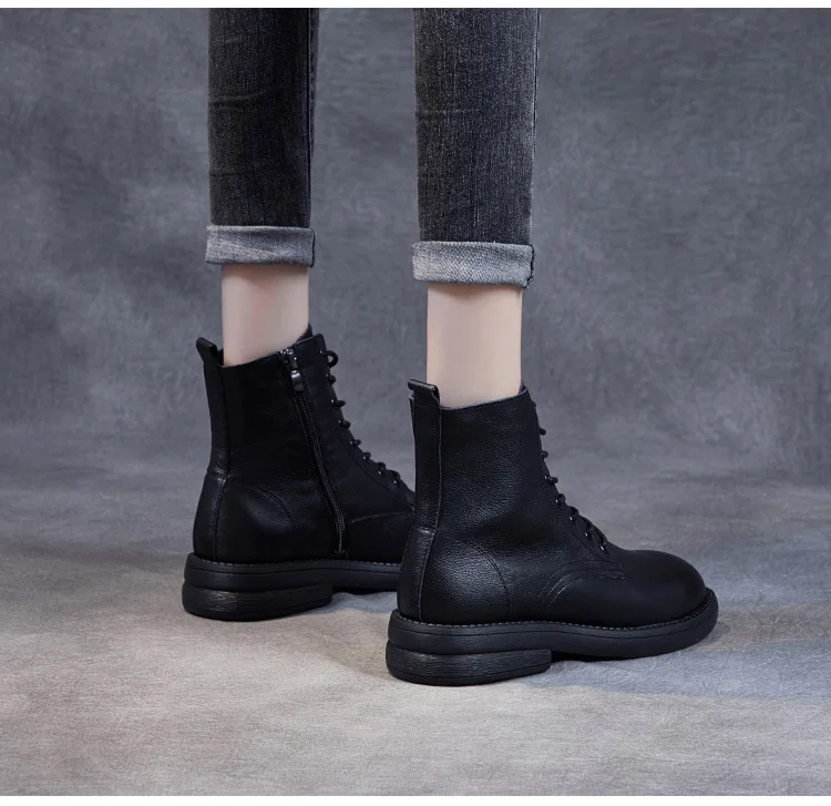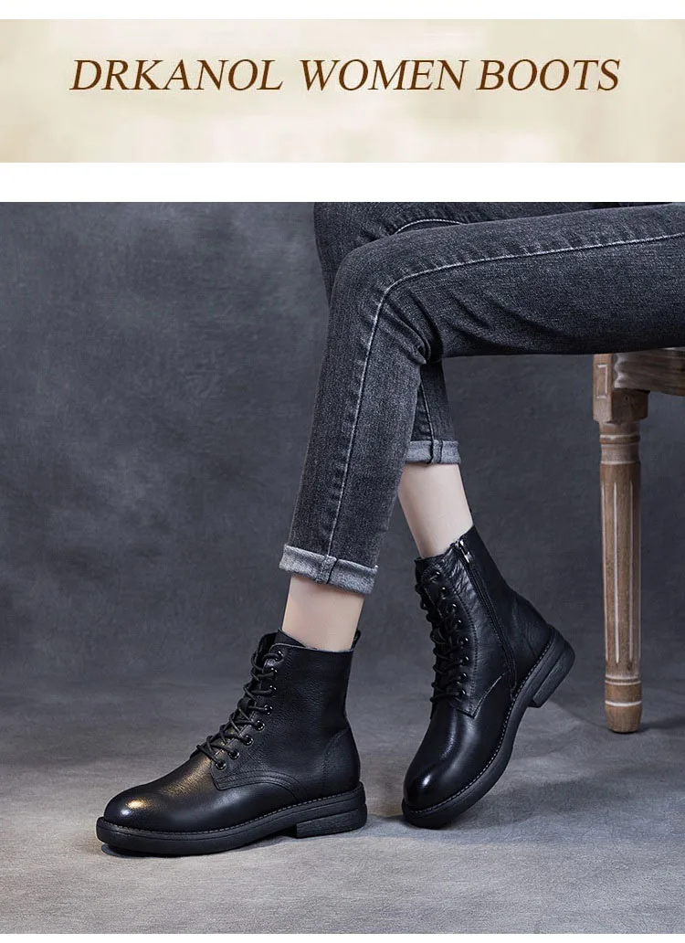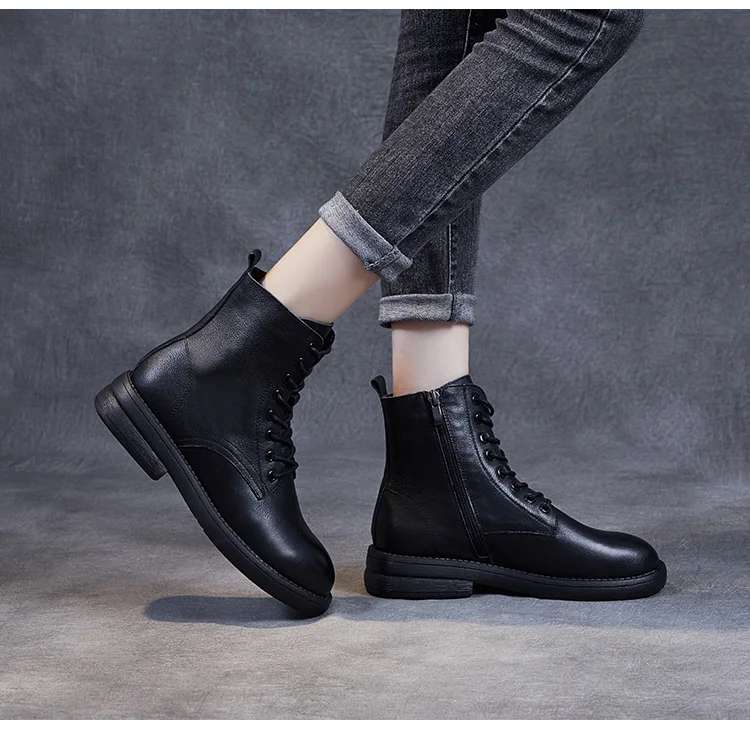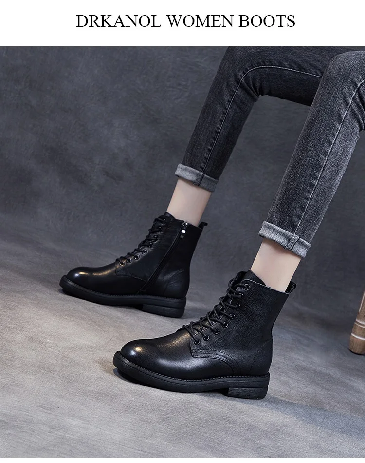 Keep your feet warm and comfortable through the cold months with these women’s genuine leather ankle boots, crafted for style, quality, and practicality. The soft short plush lining and insole provide cozy warmth and cushioning, making them ideal for winter wear. Designed with a medium heel (3–5 cm) and round toe, they offer balanced support and a relaxed, elegant look.