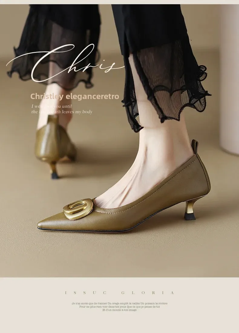 The golden thick heel brings a subtle touch of glamour, making these shoes stand out at work, events, or evening occasions. Designed with a pointed toe, they elongate the foot and add sophistication to any outfit. Perfect for spring styling, these heels combine comfort, stability, and timeless elegance, making them a must-have for women who value both beauty and practicality.