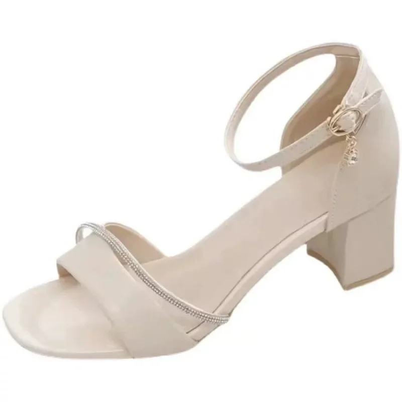 Women’s Sandals Open Toe Thick Heel One Strap High Heels Summer New Fashion Fairy Style Versatile Elegant Rubber Bottom Shoes
