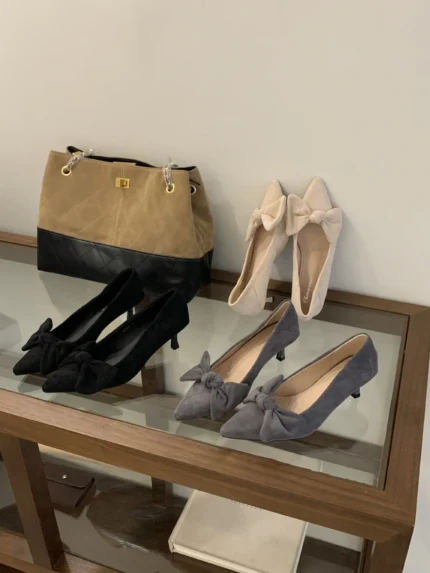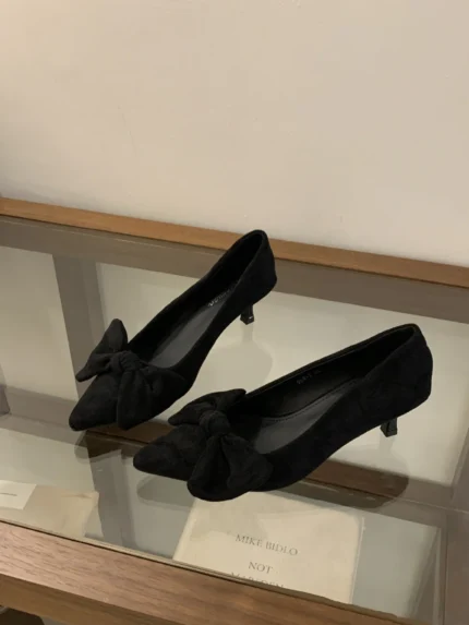 Elegant French Style Women’s Single Shoes Versatile Bowling Boots Black High Heels With 3cm Sole Thickness For Adults