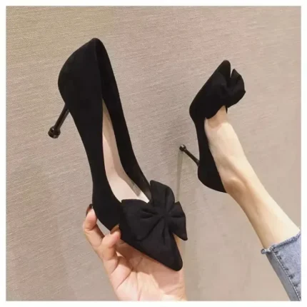 Elegant Velvet Mary Jane Shoes with Bow Tie Pointed Toe Thin Heel High Heels Comfortable Slip-On Women’s Footwear for All Sea…