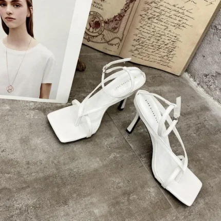 New Fashion Pinch Narrow Band Women Sandals 2025 Summer Square Open Toe Ankle Buckle Strap High Heels Ladies Shoes Sandalias